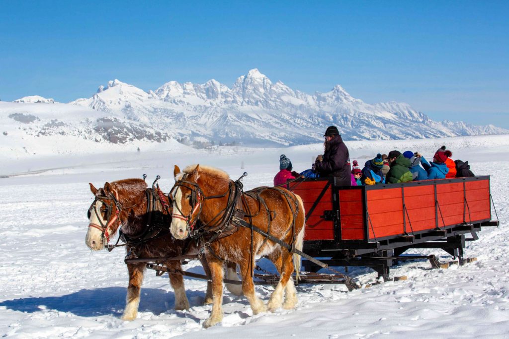 Guests can visit world-famous national parks like Yellowstone National Park and witness the vibrant colors of hundreds of hot springs and pink and yellow canyon walls at Artist’s Point. Additionally, folks can visit Grand Teton National Park to view the majestic mountain range or head out for a fun snowmobile adventure. Regardless of your travel season, you can embrace the lively ebb from season to season.